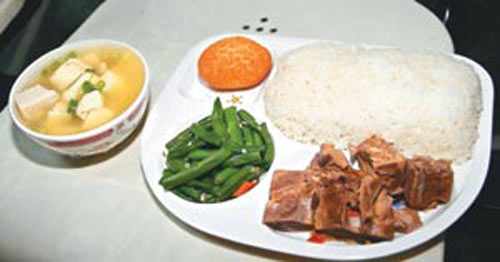 臺北監(jiān)獄提供陳水扁的第一個(gè)晚餐,包括藥燉排骨、炒青菜(四季豆)、椰子派、味噌豆腐湯共三菜一湯,臺北監(jiān)獄表示,菜色早在月初就擬定公告的菜單內(nèi)容,不會因?yàn)殛愃鈦砭透淖儭?/p>