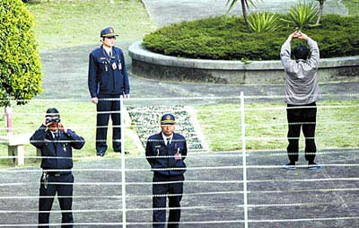 扁放風(fēng)時,故意背對媒體做體操,管理員也對媒體進行監(jiān)看。