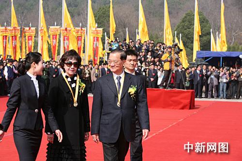 中新社西安四月四日電 (記者 冽瑋)四日上午,己丑年清明公祭軒轅黃帝典禮在陜西黃陵橋山軒轅殿前廣場舉行。全國人大常委會副委員長周鐵農(nóng)、全國政協(xié)副主席、全國工商聯(lián)主席黃孟復(fù)、中國國民黨榮譽主席連戰(zhàn)等來自海內(nèi)外的上萬名炎黃子孫,共同祭拜中華民族的“人文始祖”軒轅黃帝。