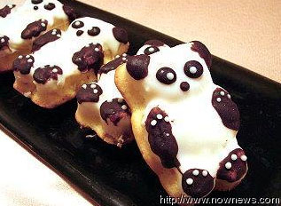 業(yè)者說從九月起就開始研發(fā)這一款“熊貓蛋糕”,以因應(yīng)即將來臨的“熊貓熱”。業(yè)者說,可愛的熊貓?jiān)煨,黑跟白的部分都是用瑞士來的巧克力,吃起來甜卻不膩,加上上面所黏的椰絲,越咀嚼越香,非常好吃。而且里頭還加了來自瑞士的糖漬柑橘丁,配上一些新鮮柳橙皮,增加果香。讓熊貓蛋糕咬下去口感豐富,一口接一口,細(xì)細(xì)咀嚼中還可以感受椰絲香氣。