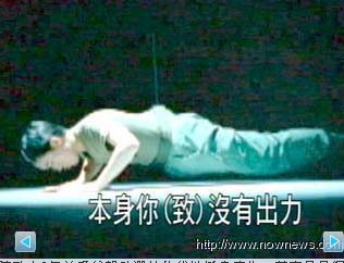 中新網(wǎng)1月21日電 據(jù)臺(tái)灣“今日新聞”報(bào)道,陳水扁之子陳致中9年前為父親助選拍的伏地挺身(俯臥撐)廣告,其實(shí)是吊鋼絲完成的,當(dāng)年幫陳致中吊鋼絲的師傅直接點(diǎn)明陳致中雙手根本沒有力,才要靠吊鋼絲來輔助。