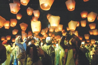 平溪國際天燈節(jié)今年除施放臺灣主燈,另有日本紙風(fēng)船天燈、墨西哥造型天燈,增添異國風(fēng)情。