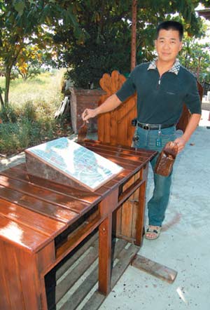 郭水發(fā)考上清潔隊后,剛好鹿港鎮(zhèn)長王惠美有意推動回收舊家具再利用工作,喜歡動手動腦的他與隊員們重新裁切舊家具、再加工,做出了叫好叫座的板凳、信箱等,變成鹿港公所推廣的“伴手禮”,鹿港游客中心買得到。