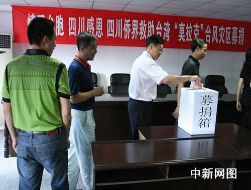 中新網(wǎng)成都8月18日電(王萌 陳典路)“去年四川地震后,臺(tái)灣同胞紛紛慷慨解囊,幫助我們度過(guò)了最艱難的日子;現(xiàn)在,臺(tái)灣同胞遭受臺(tái)風(fēng)肆虐,華夏兒女同根同源,我們義不容辭獻(xiàn)出愛心,用大愛撐起抗災(zāi)的力量,用信念幫助受災(zāi)的臺(tái)灣同胞!彼拇ㄊS辦主任周敏謙率先將捐款放入捐款箱,拉開了四川僑界“情系臺(tái)胞、四川感恩、救助臺(tái)灣‘莫拉克’臺(tái)風(fēng)災(zāi)區(qū)募捐”儀式的序幕。
