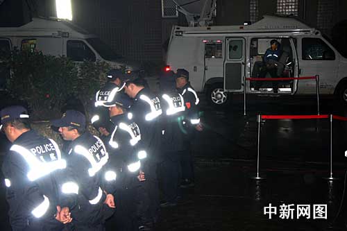 12月29日下午2時(shí),臺(tái)北地方法院開(kāi)始召開(kāi)羈押庭,就是否收押陳水扁做出裁決。時(shí)間已過(guò)去十一個(gè)小時(shí),最終裁決仍未有結(jié)果。圖為臺(tái)北地方法院靠近司法警察室的側(cè)門口。警察仍在戒備。(圖文/陳立宇)