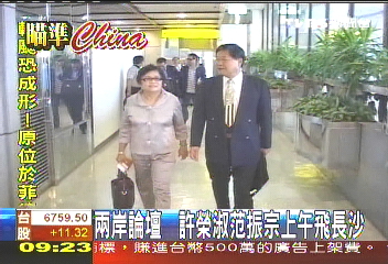 范振宗和許榮淑今天上午從桃園機(jī)場出發(fā),搭乘華航班機(jī)到長沙,而國民黨代表團(tuán)11點(diǎn)鐘則從松山機(jī)場搭包機(jī)直飛長沙,各自出發(fā)。