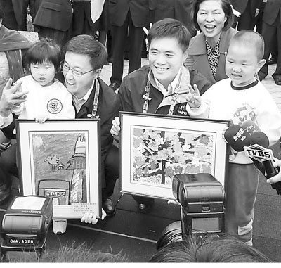 由于沒(méi)有安排接駁車,記者打車趕往下一站——北投垃圾焚化處理廠。由于此項(xiàng)參觀也不對(duì)外,記者又趕到附近的一家幼兒園等候。在臺(tái)北市長(zhǎng)郝龍斌的陪同下,韓正與此間的小朋友見面,小朋友為兩位市長(zhǎng)唱歌跳舞,又把自己畫的畫送給市長(zhǎng),韓正把帶來(lái)的上海世博會(huì)吉祥物海寶送給小朋友,又和他們合影留念,小朋友個(gè)個(gè)樂(lè)得手舞足蹈。