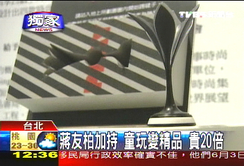 中新網(wǎng)5月14日電 據(jù)臺灣TVBS報(bào)道,蔣家后代蔣友柏設(shè)計(jì)過許多產(chǎn)品,目前正式跨足臺灣玩具市場。蔣友柏花了2年時(shí)間,設(shè)計(jì)了包括毽子、竹蜻蜓等一系列兒童玩具,用PVC材質(zhì)制作,造型非常時(shí)尚,也因?yàn)橛辛耸Y友柏加持,一個小玩具居然要賣590元新臺幣。