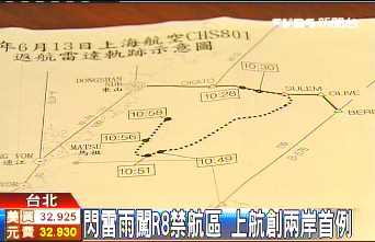 中新網(wǎng)6月16日電 據(jù)臺灣TVBS報道,兩岸直航以來發(fā)生第一次霸機(jī)事件,臺當(dāng)局民航部門拿出天氣惡劣的數(shù)據(jù)替FM801班機(jī)背書,不過但同一份數(shù)據(jù)卻掀開一個不能說的秘密,該班機(jī)“抄快捷方式”返航上海,回程穿越敏感的“R8禁航區(qū)”,成為兩岸直航客機(jī)飛越軍事空管區(qū)首例。