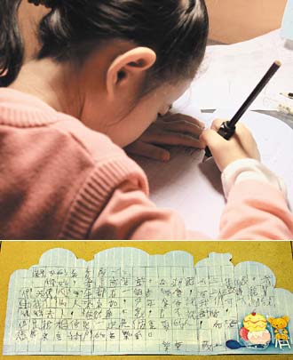 “親愛的美青阿姨:您好,我是高紫萱,麗湖小學(xué)三年級。我們天使心每年都有一個音樂會,可以邀請能幫助我們的人來參加,今年爸爸說我們可以試試馬(英九)夫人,雖然我不懂,也不認(rèn)識您,但是我相信您一定是個重要的人,希望您能來聽我們的音樂會。紫萱敬上”。