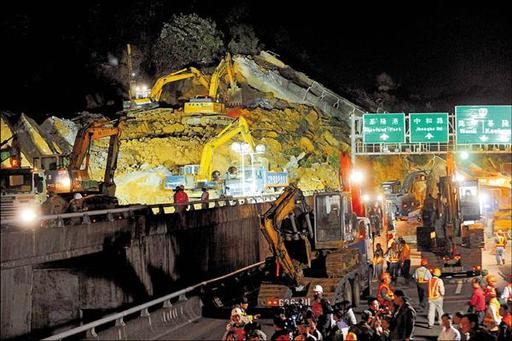 由于土石量太大,總重超過20萬噸,臺灣“高速公路局長”曾大仁表示,將全面搶修,希望兩周內(nèi)清理完土石,搶通可能需20日以上;不過軍方搶救人員昨晚接到軍方高層最新指令,要求一周內(nèi)全力搶通。
