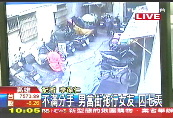 中新網(wǎng)6月24日電 據(jù)臺(tái)灣TVBS報(bào)道,高雄有一名男子,因?yàn)椴粷M同居女友打算帶著孩子要求分手,竟然持棍棒追打、拖行女友,過(guò)程全都被監(jiān)視器錄下。