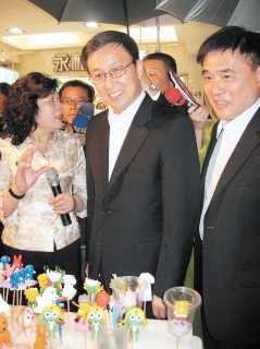 可能是晚宴都還沒消化,韓正來到夜市并未品嘗任何小吃,只有喝了一小杯茶葉攤商的奉茶,夜市內(nèi)一家藝品店老板戴忠泉送給韓正一只石刻作品,象征“時時好運、節(jié)節(jié)高升”,郝龍斌在旁強調(diào)“臺北市民就是這么熱情”,韓正笑著回應(yīng)說:“全都感受到了!”