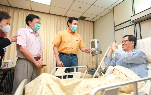 中新網(wǎng)5月25日電 據(jù)“中央社”報道,馬英九24日晚間偕同臺當(dāng)局“行政院長”劉兆玄前往臺北榮民總醫(yī)院,探視進(jìn)行肺部腫瘤切除手術(shù)的蕭萬長,馬英九希望蕭萬長安心靜養(yǎng),早日康復(fù)。