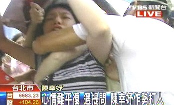 陳幸妤連日來傳出因為遭限制出境,無法赴美進修而心情不穩(wěn),見到媒體提問,對于陳水扁寫信向馬英九陳情,陳幸妤聽完問題后,變的激動情緒崩潰,更一度沖向記者,作勢要拍打媒體鏡頭。