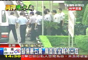 臺(tái)北地院13日裁定第三度延押陳水扁,15日提訊陳水扁就機(jī)要費(fèi)案提示卷證,陳水扁一開(kāi)始先抱怨自己的腳傷遭到臺(tái)北看守所誤診,又稱(chēng)被關(guān)在看守所內(nèi)沒(méi)有司法、醫(yī)療人權(quán)。陳水扁還譏諷審判長(zhǎng)蔡守訓(xùn),不要第四次延押,又拿他腳傷的事來(lái)當(dāng)作理由。