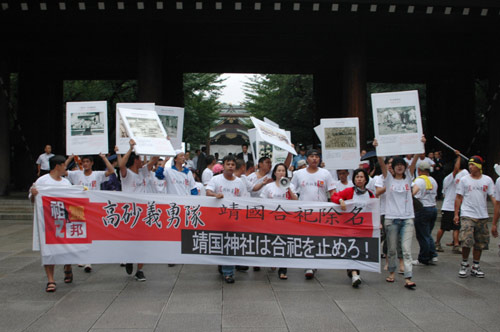 “還我祖靈隊(duì)”接著在大廣場(chǎng)上高歌“安魂曲”、吊祭早年被強(qiáng)迫合祀于靖國(guó)神社的祖先。他們?cè)趶V場(chǎng)停留近30分鐘后列隊(duì)步出靖國(guó)神社正殿,搭車離開(kāi)現(xiàn)場(chǎng)。