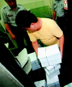為避免意外,一直到深夜12點,轄區(qū)中正一分局及法警還在臺北地院四周戒護(hù)。這時眼尖的記者看到蔡守訓(xùn)抱著一千多頁的判決書步出辦公室,書類上貼了許多黃色的便利貼,交給專人送到法院附近的印刷廠,連夜趕印。