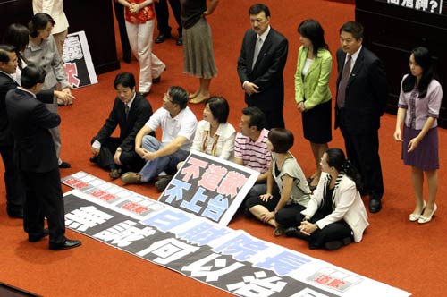 民進(jìn)黨團(tuán)的阻撓行為導(dǎo)致議事延誤逾一小時(shí)。近中午時(shí),雖然吳敦義順利上臺(tái),但在藍(lán)綠“立委”的雙重人墻包圍下,僅報(bào)告約10分鐘即結(jié)束。在隨后的總質(zhì)詢中,吳敦義接任“行政院長”前的香港之行,成為民進(jìn)黨“立委”質(zhì)疑焦點(diǎn)。