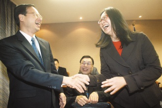 中新網(wǎng)12月17日電 第四次兩岸兩會(huì)領(lǐng)導(dǎo)人商談即將登場(chǎng),;鶗(huì)董事長(zhǎng)江丙坤日前接受臺(tái)灣《聯(lián)合晚報(bào)》專訪。對(duì)于在野黨發(fā)動(dòng)群眾抗議,江丙坤憂心表示,如果繼續(xù)內(nèi)耗下去,他擔(dān)心臺(tái)灣是否會(huì)變成菲律賓第二,他期待朝野坐下來,好好地談一談,大陸的崛起、全球化與全球暖化以及區(qū)域整合、韓國(guó)的競(jìng)爭(zhēng)等議題。