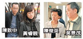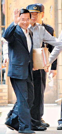 律師表示已經(jīng)多次未到庭的吳淑珍下午會準(zhǔn)時到庭,合議庭今天傳訊扁家白手套蔡銘杰、蔡銘哲兄弟、陳鎮(zhèn)慧、郭銓慶,以及吳景茂、陳俊英夫婦,陳致中、黃睿靚夫婦,下午則傳訊吳淑珍和馬永成、林德訓(xùn)。