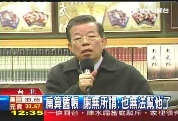 謝長廷說,“他其實(shí)也曾經(jīng)握著我的手,眼眶泛紅講說,他只要生命在一定會(huì)報(bào)答我,也曾經(jīng)有這樣的鏡頭,我也覺得那是事實(shí)的,他怎么講都沒有關(guān)系,因?yàn)槲乙呀?jīng)沒有辦法幫助了。”