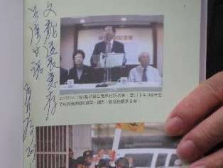 據(jù)“今日新聞”報(bào)道,鄭文龍律見完陳水扁,從公文包拿出《臺(tái)灣的十字架》,翻開第一頁,上頭寫著“文龍道長惠存,臺(tái)灣甘諾。”下頭再簽上“陳水扁”三個(gè)字,注明時(shí)間是2009年1月20日土所。