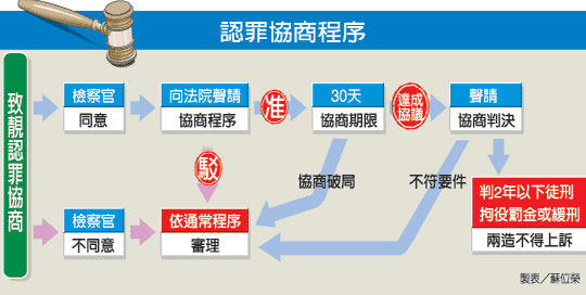 何謂“認(rèn)罪協(xié)商”?簡(jiǎn)單說(shuō)就是被告認(rèn)罪后,與檢察官、法官針對(duì)罪名、刑度等相關(guān)事項(xiàng)進(jìn)行協(xié)商的刑事訴訟制度。在認(rèn)罪協(xié)商程序中,被告須與檢察官協(xié)商罪名、刑度后,向法院陳報(bào),經(jīng)法院同意下開(kāi)庭制作“協(xié)商筆錄”,即完成協(xié)商程序,案件就不能再上訴,宣告定讞。不過(guò),公訴檢察官在與被告協(xié)商前,必須先征詢偵查檢察官的意見(jiàn),甚至還要經(jīng)檢察長(zhǎng)批示準(zhǔn)許后,才能實(shí)施。
