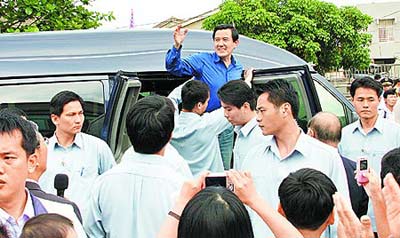 中新網(wǎng)3月23日電 據(jù)臺灣《蘋果日報》報道,馬英九22日下午前往嘉義視察途中,座車左后輪突然爆胎,緊跟在后方的廂型車緊急煞車與座車輕微追撞,由于事發(fā)突然,隨行安全人員嚇了一跳,馬英九了解狀況后,立即換車繼續(xù)行程。馬英九安全未受影響,事后也表示自己“處變不驚”。