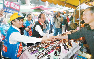 姚立明則與新黨主席郁慕明進(jìn)行車隊(duì)掃街。