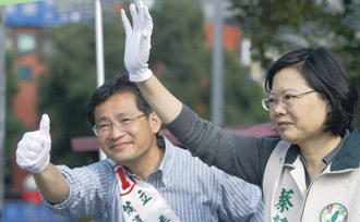 民進(jìn)黨主席蔡英文與黨籍市議員則陪同周柏雅街頭拜票,她說,藍(lán)綠差距正快速縮小,她對(duì)周柏雅的選情樂觀。