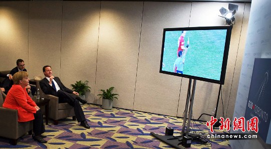 默克爾是一位著名的球迷領(lǐng)導(dǎo)人,德國隊(duì)上一場與英格蘭隊(duì)的比賽時(shí),當(dāng)時(shí)正在加拿大參加G20領(lǐng)導(dǎo)人峰會(huì)的默克爾就忙里抽閑,和英國首相卡梅倫一起觀看了這場比賽。比賽中裁判的一個(gè)判罰引發(fā)爭議,不過德國隊(duì)最終4比1大勝英格蘭隊(duì)。