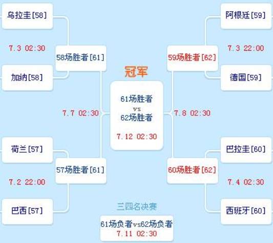 中新網(wǎng)6月30日電 北京時(shí)間30日凌晨,南非世界杯1/8決賽全部結(jié)束,西班牙隊(duì)和巴拉圭隊(duì)在最后一個(gè)比賽日的爭(zhēng)奪中踏上了八強(qiáng)的末班車。至此,世界杯八強(qiáng)全部產(chǎn)生,八強(qiáng)賽的對(duì)陣形勢(shì)是:荷蘭VS巴西,烏拉圭VS加納,德國VS阿根廷,巴拉圭VS西班牙。