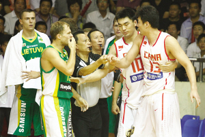 雖然僅僅是一場(chǎng)熱身賽,但場(chǎng)上的火藥味卻非常濃烈,比賽中雙方險(xiǎn)些釀成大規(guī)模沖突。第二節(jié)還剩2分鐘,蘇偉在籃下和立陶宛隊(duì)的球員發(fā)生了激烈的肢體對(duì)抗,由于對(duì)方有明顯的兇狠犯規(guī)動(dòng)作,蘇偉憤怒地和對(duì)手沖過去理論,好在隨后被隊(duì)友拉開,才及時(shí)避免了事件的進(jìn)一步擴(kuò)大。