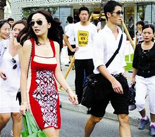 據(jù)拍到這組照片的南方都市報(bào)的記者描述,當(dāng)天在世博園閑逛,準(zhǔn)備前往人氣爆棚的沙特館,沒想到見到一位紅衣美女從沙特館貴賓通道出來,十分惹眼。正欣賞如花美眷之時(shí),王勵(lì)勤出現(xiàn)了。王勵(lì)勤穿著一件白色的中袖襯衣和一條黑色短褲,背著一個(gè)名牌包包,看起來心情頗好。兩人走出沙特館后就迅速戴上了墨鏡,并保持至少一米的距離。隨后兩人一路步行,與他們同行的還有王勵(lì)勤的父母及另一名年輕女子。那名年輕女子見到有人拍照,馬上上前阻止。路上,紅衣女子與王勵(lì)勤的母親談笑風(fēng)生,看得出王勵(lì)勤的母親很喜歡她。
