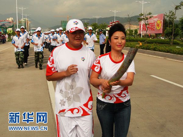 9月12日上午,以“關(guān)注特奧,情燃海西;和諧之光,普照八閩”為主題的第五屆全國特奧會火炬?zhèn)鬟f活動最后一站在福建寧德隆重舉行。日前剛剛被聘任為本屆特奧會愛心大使的著名歌唱家劉媛媛?lián)?1名火炬手之一,攜智障兒童雷孝文共同進(jìn)行了第二棒的傳遞。盡管每一棒接力只有60米的距離,但劉媛媛仍然難掩興奮之情:“真的非常高興,‘愛心大使’和‘火炬手’的雙重身份令我倍感榮幸和責(zé)任。通過火炬?zhèn)鬟f這個儀式,希望更多的人能夠參與到關(guān)注、關(guān)心、關(guān)愛智障孩子的事業(yè)當(dāng)中來!笔栈饍x式后,劉媛媛與幾名青年志愿者共同放飛了象征著希望與美好的和平鴿。儀式現(xiàn)場,劉媛媛還攜數(shù)名智障運(yùn)動員演唱了《感恩》、《美好祝福》兩首歌曲。