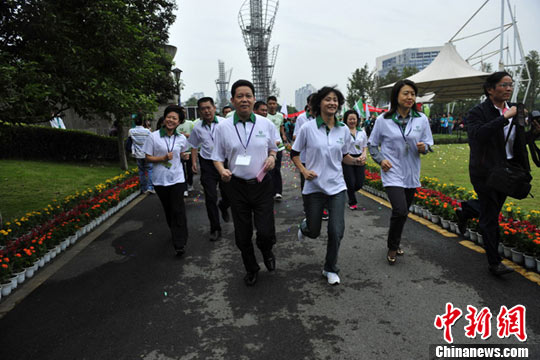 中新網(wǎng)成都9月25日電 (郝思宏)25日上午,安利紐崔萊健康跑在成都溫江碧落湖公園舉行,著名川籍奧運(yùn)冠軍——“跳水皇后”高敏現(xiàn)身活動(dòng)現(xiàn)場并擔(dān)任領(lǐng)跑嘉賓,成都市政協(xié)副主席楊興平、成都市體育局副局長馮曉鐘、溫江區(qū)區(qū)委書記田蓉等領(lǐng)導(dǎo)出席活動(dòng),過萬市民參加了本次健康跑。