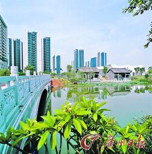 媒體村內(nèi)風(fēng)景如畫(huà),小橋流水令人愉悅。