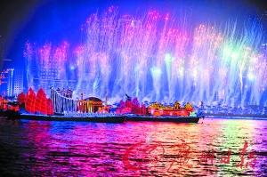 亞運(yùn)開幕式首次彩排, 焰火、花船分外美麗。