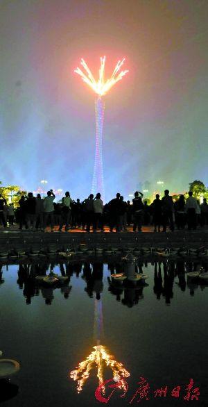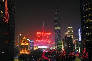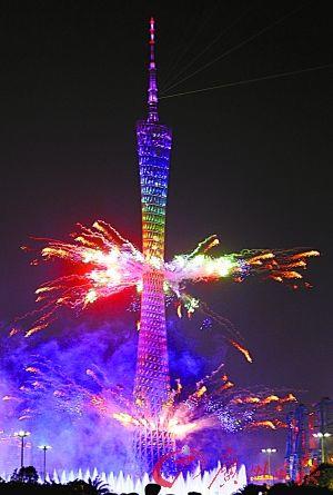 焰火中廣州塔火樹(shù)銀花