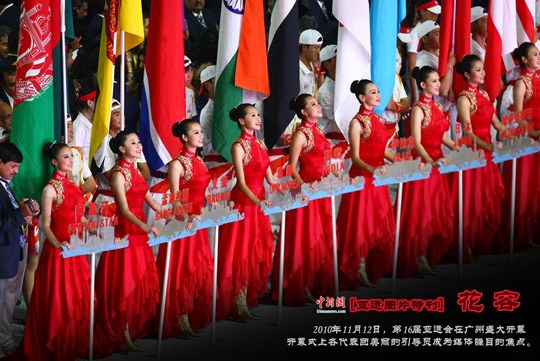 中新社廣州11月12日電(記者 盧巖) 第16屆亞運(yùn)會(huì)今晚在廣州市海心沙拉開了帷幕。作為賽會(huì)主角的運(yùn)動(dòng)員們在入場式上亮相,在點(diǎn)燃開幕式氣氛的同時(shí),也將自己繪成一道道靚麗的風(fēng)景線。
