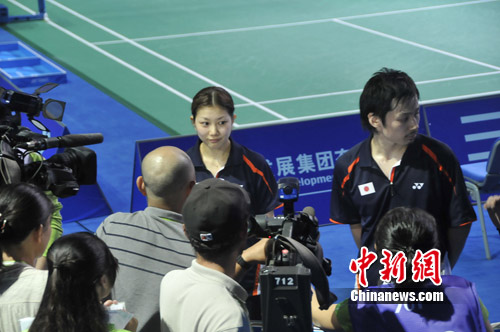 身材高挑、容貌俊秀的潮田玲子是日本代表團的開幕式旗手。作為日本最有號召力的羽毛球明星之一,在中國也不乏追隨者。比賽還未結束,各路媒體就已架起長槍短炮“恭迎”美女駕臨。她在場邊受訪時,更是引來不少球迷“圍觀”。更有粉絲來到臨近混合區(qū)的場邊,以潮田為“背景”拍照留念,看臺上快門聲一時咔咔響個不停。