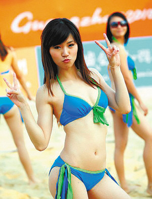 火辣寶貝成賽場一景,近日,第十六屆亞運(yùn)會沙灘排球比賽在亞運(yùn)城沙排場進(jìn)行,一群青春靚麗的沙排寶貝為比賽增色不少。但也有一些參賽國家的運(yùn)動員抱怨,沙排寶貝熱辣的著裝和動作讓他們在比賽中不可能集中注意力。