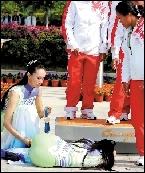 事后,一位組委會官員稱:“禮儀小姐們表面風(fēng)光,其實工作量很大,對體力要求極高。開賽前練姿勢每天都要到晚上10點多。” 特派廣州記者 孫永軍 蒲東峰 攝