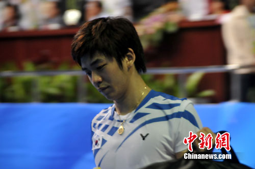 雖然脖子上依舊戴著期盼帶來幸運的奧運金牌掛件,雖然場邊中國球迷齊聲喊“殺”為他助威,但命運之神顯然不站在李龍大這邊。在今天的失利后,他與鄭在成只能無奈地拿到一枚亞運銅牌。