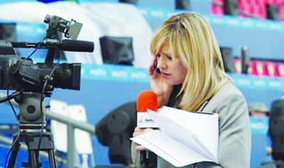 這名美女主持人名叫卡洛琳·布朗,這是她第六次采訪劉翔!把诺鋳W運(yùn)會(huì)、大阪世錦賽等等,我之前見(jiàn)過(guò)他五次,北京奧運(yùn)會(huì)我親眼看到他受傷退賽了,感覺(jué)非常傷心!笨辶照f(shuō),她希望這一次劉翔能夠重新飛翔拿到冠軍。在攀談中,卡洛琳得知記者來(lái)自中國(guó),她饒有興趣地打聽(tīng)劉翔的近況!拔铱磮(bào)道說(shuō)他的傷尚未痊愈,是這樣嗎?你能告訴我劉翔的一些情況嗎?”在明白劉翔此次是為亞運(yùn)三冠王而來(lái),卡洛琳顯得非常興奮,她說(shuō):“那我們一會(huì)兒期待他吧!” 木 易