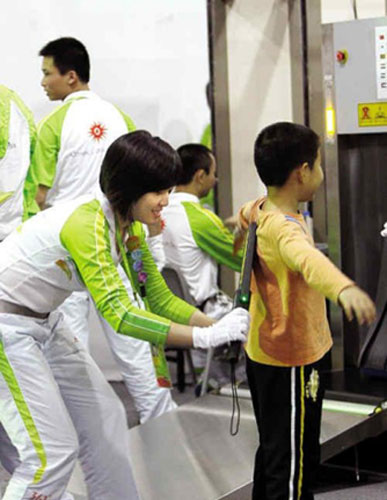 在體育場(chǎng)館安檢口工作的志愿者們,需要對(duì)每一位觀眾進(jìn)行前、后身從頭到腳的掃描,這意味著每檢查一個(gè)觀眾就要下蹲兩次。詹婷婷是廣東警官學(xué)院即將畢業(yè)的大三學(xué)生,作為亞運(yùn)志愿者,在廣州體育館安檢口的崗位上,她不斷地做著深蹲動(dòng)作,最多的一天超過(guò)2600次。