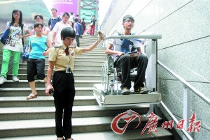 目前已經完成天河購物城、北京路廣百商場、上下九步行街、友誼環(huán)市東店等購物熱點無障礙設施改造,包括增加低位收銀臺、設置無障礙電梯等。其中,北京路廣百商場還專門在南門增設了無障礙坡道和樓梯升降機。