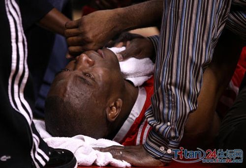 火箭今天試圖先打開外線,迫使對方擴大防守范圍之后,再主打姚明。比賽從一開始就進入白熱化,雙方你來我往,場面爭奪相當(dāng)激烈。距離第一節(jié)比賽結(jié)束還剩1分17秒,穆大叔在和奧登的一次拼搶籃板過程中突然倒地,痛苦的捂住左膝趟在地上。