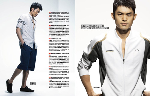 林丹:呵呵,也沒有那么好,只不過我們平時運(yùn)動時間特別緊張,空閑時間很少,所以看雜志是很多運(yùn)動員的放松方式。我就很喜歡看時尚雜志,另外我也會經(jīng)常出國比賽,會看到一些比較時尚的事物。最主要看自己的敏銳度,多去觀察,尋找適合自己的東西,不一定要跟流行,比如今年流行裙子,但我不可能跑去買條裙子穿。